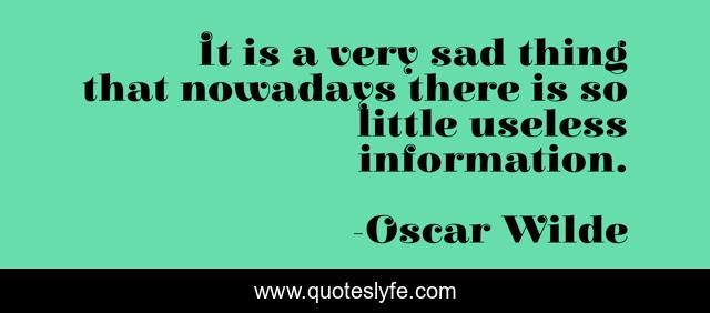 This page presents the quote "It is a very sad thing that nowadays there is so little useless information.". Author of this quote is Oscar Wilde. This quote is about information, little, literature, sad, wisdom,.