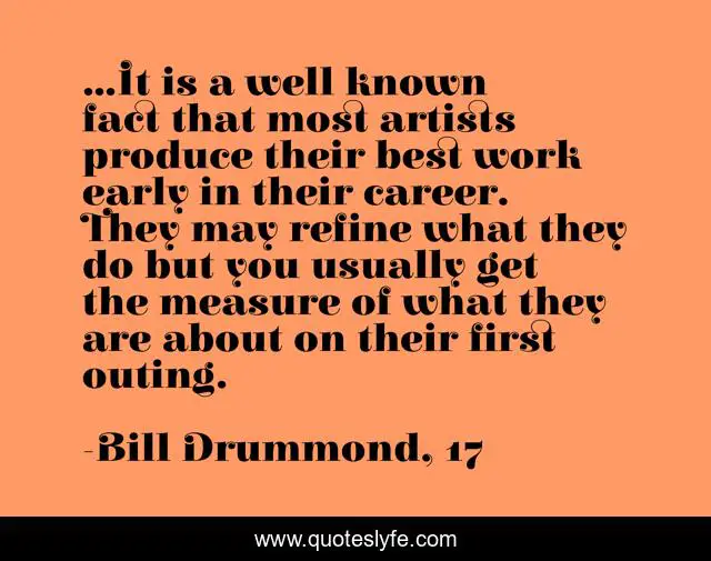 This page presents the quote "...It is a well known fact that most artists produce their best work early in their career. They may refine what they do but you usually get the measure of what they are about on their first outing.". Author of this quote is Bill Drummond, 17. .