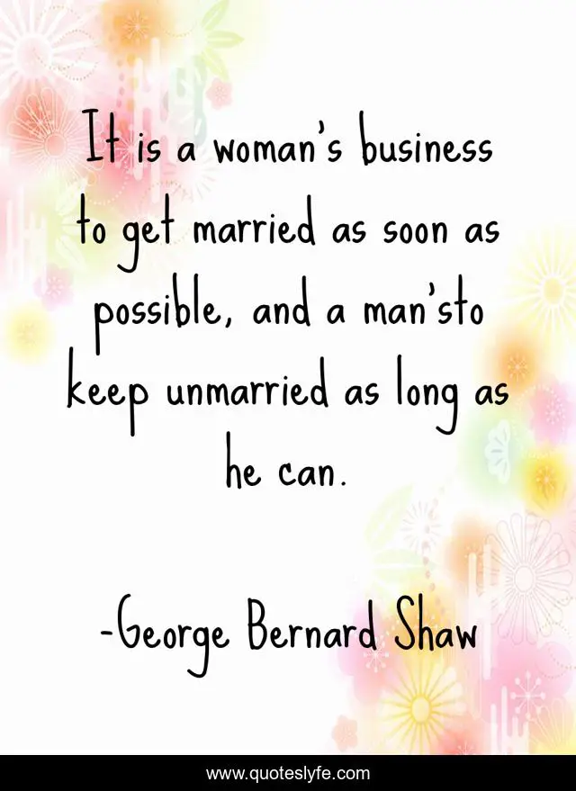 This page presents the quote "It is a woman's business to get married as soon as possible, and a man'sto keep unmarried as long as he can.". Author of this quote is George Bernard Shaw. This quote is about men, marriage, women,.
