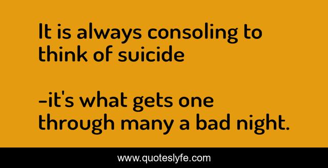 This page presents the quote "It is always consoling to think of suicide". Author of this quote is it's what gets one through many a bad night.. This quote is about gillian flynn, dark places,.