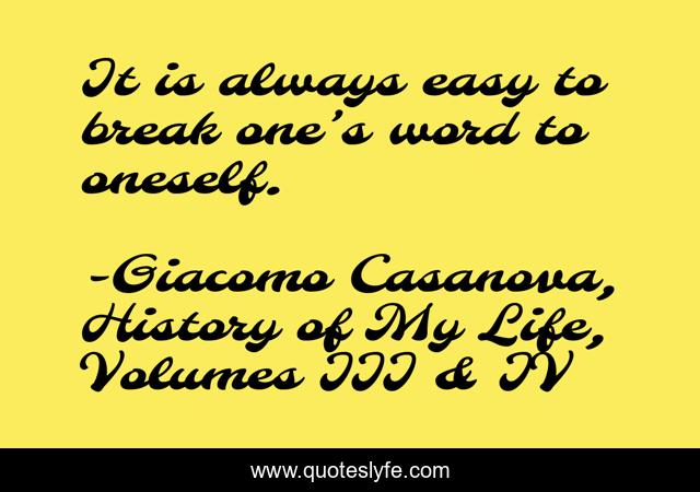 "Giacomo Casanova, History of My Life, Volumes III & IV Quotes." Quoteslyfe.com, 2025. Fri. 05 Dec. 2025. <https://www.quoteslyfe.com/quote/It-is-always-easy-to-break-one-47777>.