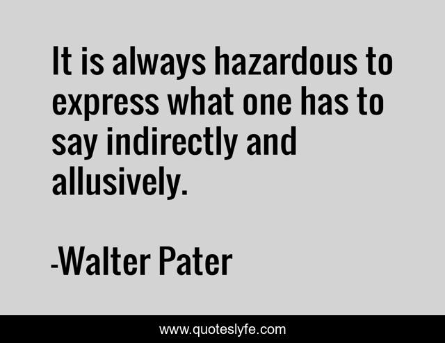 This page presents the quote "It is always hazardous to express what one has to say indirectly and allusively.". Author of this quote is Walter Pater. .