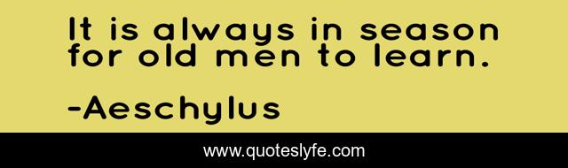 This page presents the quote "It is always in season for old men to learn.". Author of this quote is Aeschylus. This quote is about season, men, old, learning,.