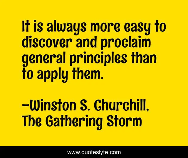 This page presents the quote "It is always more easy to discover and proclaim general principles than to apply them.". Author of this quote is Winston S. Churchill, The Gathering Storm. This quote is about application, reason, principles, reasoning,.