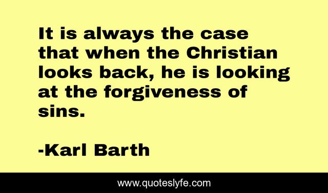 This page presents the quote "It is always the case that when the Christian looks back, he is looking at the forgiveness of sins.". Author of this quote is Karl Barth. This quote is about looking, christian, back,.