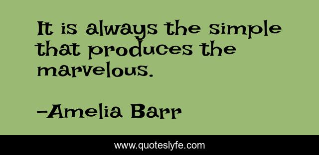 This page presents the quote "It is always the simple that produces the marvelous.". Author of this quote is Amelia Barr. .