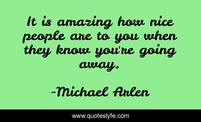 This page presents the quote "It is amazing how nice people are to you when they know you're going away.". Author of this quote is Michael Arlen. This quote is about people, nice,.