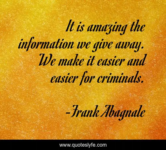 "Frank Abagnale Quotes." Quoteslyfe.com, 2025. Mon. 08 Dec. 2025. <https://www.quoteslyfe.com/quote/It-is-amazing-the-information-we-give-304702>.