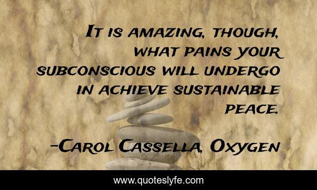This page presents the quote "It is amazing, though, what pains your subconscious will undergo in achieve sustainable peace.". Author of this quote is Carol Cassella, Oxygen. This quote is about subconscious, peace, pain,.