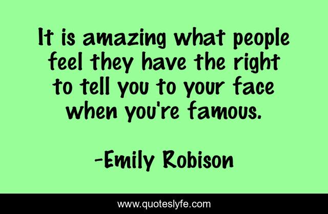 This page presents the quote "It is amazing what people feel they have the right to tell you to your face when you're famous.". Author of this quote is Emily Robison. This quote is about amazing, people,.