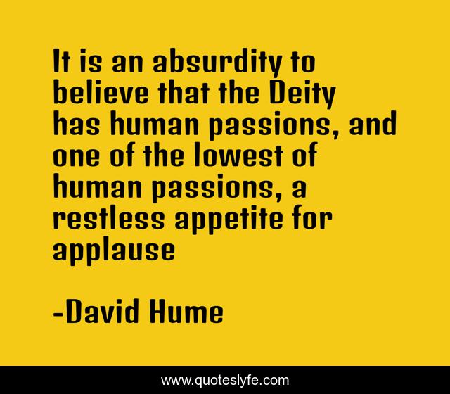 This page presents the quote "It is an absurdity to believe that the Deity has human passions, and one of the lowest of human passions, a restless appetite for applause". Author of this quote is David Hume. This quote is about god, religion,.