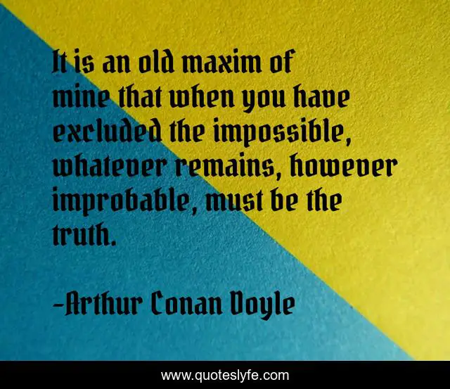 This page presents the quote "It is an old maxim of mine that when you have excluded the impossible, whatever remains, however improbable, must be the truth.". Author of this quote is Arthur Conan Doyle. This quote is about impossible, whatever,.