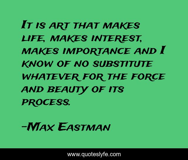 This page presents the quote "It is art that makes life, makes interest, makes importance and I know of no substitute whatever for the force and beauty of its process.". Author of this quote is Max Eastman. This quote is about life, art,.