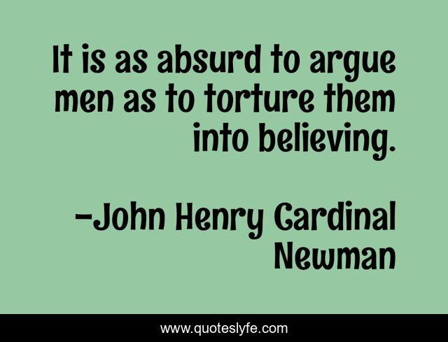 This page presents the quote "It is as absurd to argue men as to torture them into believing.". Author of this quote is John Henry Cardinal Newman. This quote is about faith, unity,.