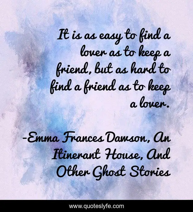 This page presents the quote "It is as easy to find a lover as to keep a friend, but as hard to find a friend as to keep a lover.". Author of this quote is Emma Frances Dawson, An Itinerant House, And Other Ghost Stories. This quote is about friends, love, lovers, friendship, affection,.