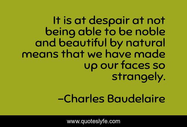 This page presents the quote "It is at despair at not being able to be noble and beautiful by natural means that we have made up our faces so strangely.". Author of this quote is Charles Baudelaire. This quote is about fashion, artificiality, costume,.