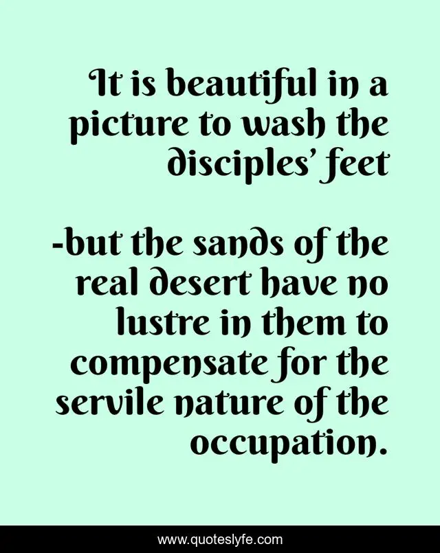 This page presents the quote "It is beautiful in a picture to wash the disciples’ feet". Author of this quote is but the sands of the real desert have no lustre in them to compensate for the servile nature of the occupation.. This quote is about john henry newman, parochial and plain sermons [complete],.
