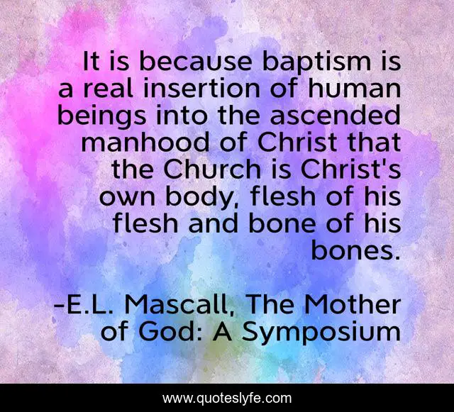 "E.L. Mascall, The Mother of God: A Symposium Quotes." Quoteslyfe.com, 2025. Fri. 05 Dec. 2025. <https://www.quoteslyfe.com/quote/It-is-because-baptism-is-a-real-201784>.