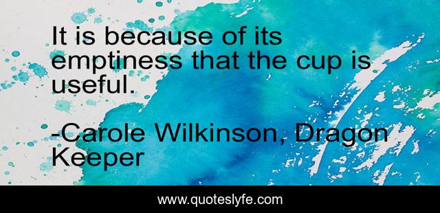 This page presents the quote "It is because of its emptiness that the cup is useful.". Author of this quote is Carole Wilkinson, Dragon Keeper. This quote is about ancient-chinese, dragons, inspirational, dragon-keeper, enthusiasm, wisdom,.