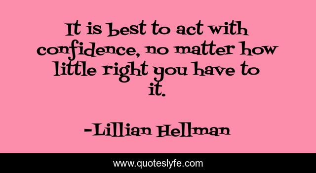 This page presents the quote "It is best to act with confidence, no matter how little right you have to it.". Author of this quote is Lillian Hellman. This quote is about matter, confidence,.
