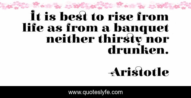 This page presents the quote "It is best to rise from life as from a banquet neither thirsty nor drunken.". Author of this quote is Aristotle. .