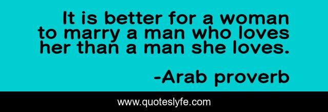 This page presents the quote "It is better for a woman to marry a man who loves her than a man she loves.". Author of this quote is Arab proverb. .