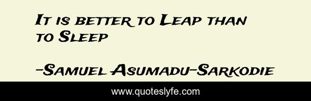 This page presents the quote "It is better to Leap than to Sleep". Author of this quote is Samuel Asumadu-Sarkodie. This quote is about proverbs, words-of-knowledge, discernment, parables, words-of-wisdom, inspirational-life,.