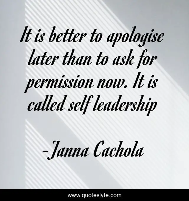 This page presents the quote "It is better to apologise later than to ask for permission now. It is called self leadership". Author of this quote is Janna Cachola. This quote is about service-excellence, customer-service, lead, courage, self-leadership, leadership, lead-where-you-are, goal-digger,.