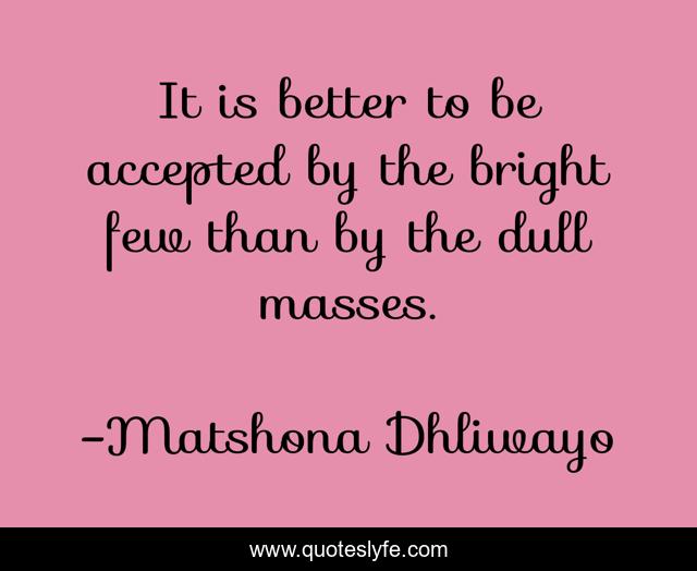 "Matshona Dhliwayo Quotes." Quoteslyfe.com, 2025. Sat. 06 Dec. 2025. <https://www.quoteslyfe.com/quote/It-is-better-to-be-accepted-by-98114>.