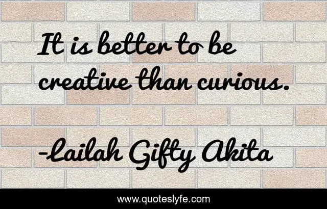 This page presents the quote "It is better to be creative than curious.". Author of this quote is Lailah Gifty Akita. This quote is about creative, wisdom-of-lailah-gifty-akita, positive-attitude, learning, curious, education,.