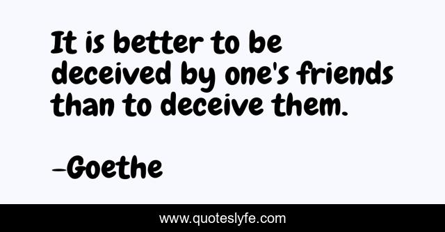 This page presents the quote "It is better to be deceived by one's friends than to deceive them.". Author of this quote is Goethe. This quote is about friends, friendship,.