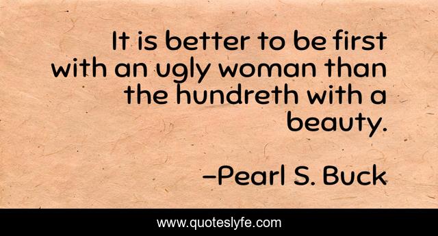 This page presents the quote "It is better to be first with an ugly woman than the hundreth with a beauty.". Author of this quote is Pearl S. Buck. .