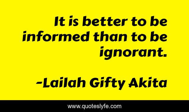 This page presents the quote "It is better to be informed than to be ignorant.". Author of this quote is Lailah Gifty Akita. This quote is about information, confidence, knowledge, positive, motivational, ignorance, learning-process, optimistic, education,.