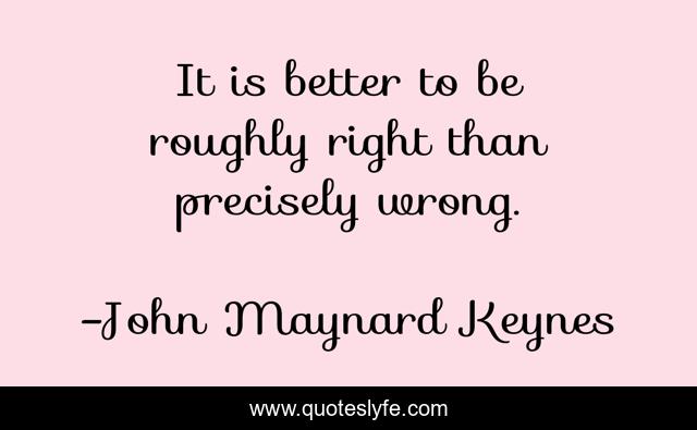 This page presents the quote "It is better to be roughly right than precisely wrong.". Author of this quote is John Maynard Keynes. This quote is about wrong, right,.