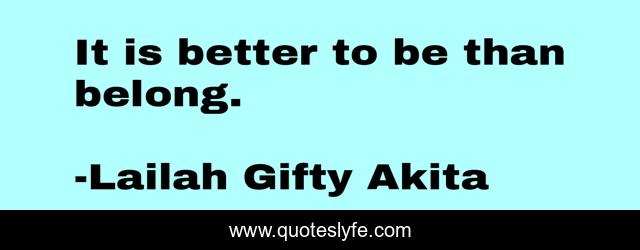 "Lailah Gifty Akita Quotes." Quoteslyfe.com, 2025. Fri. 05 Dec. 2025. <https://www.quoteslyfe.com/quote/It-is-better-to-be-than-belong-77661>.