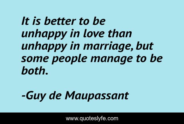 This page presents the quote "It is better to be unhappy in love than unhappy in marriage, but some people manage to be both.". Author of this quote is Guy de Maupassant. This quote is about better, love, affection, people,.