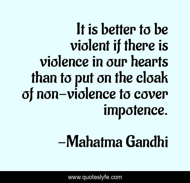 This page presents the quote "It is better to be violent if there is violence in our hearts than to put on the cloak of non-violence to cover impotence.". Author of this quote is Mahatma Gandhi. .