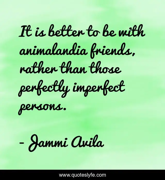 This page presents the quote "It is better to be with animalandia friends, rather than those perfectly imperfect persons.". Author of this quote is Jammi Avila. .