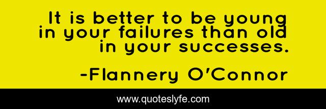 This page presents the quote "It is better to be young in your failures than old in your successes.". Author of this quote is Flannery O'Connor. This quote is about failures, mistakes,.