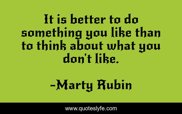 This page presents the quote "It is better to do something you like than to think about what you don't like.". Author of this quote is Marty Rubin. This quote is about action, thought, likes-and-dislikes, negativity,.