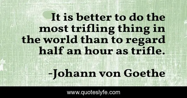 This page presents the quote "It is better to do the most trifling thing in the world than to regard half an hour as trifle.". Author of this quote is Johann von Goethe. This quote is about day, one,.