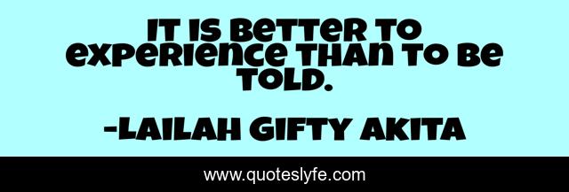 This page presents the quote "It is better to experience than to be told.". Author of this quote is Lailah Gifty Akita. This quote is about failures, life-lessons, never-give-up,.