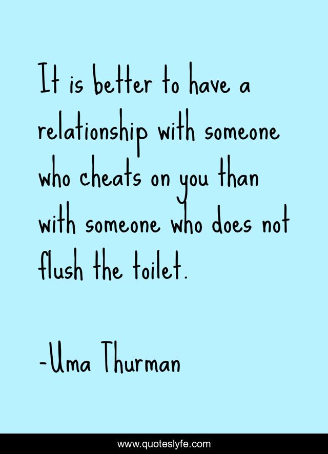 This page presents the quote "It is better to have a relationship with someone who cheats on you than with someone who does not flush the toilet.". Author of this quote is Uma Thurman. This quote is about better, someone,.
