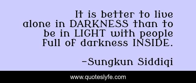 This page presents the quote "It is better to live alone in DARKNESS than to be in LIGHT with people full of darkness INSIDE.". Author of this quote is Sungkun Siddiqi. .