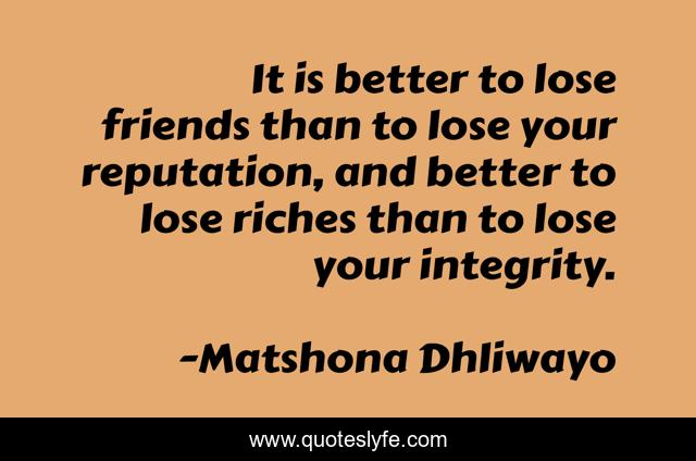 It is better to lose friends than to lose your reputation, and better to lose riches than to lose your integrity.