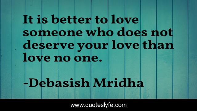 This page presents the quote "It is better to love someone who does not deserve your love than love no one.". Author of this quote is Debasish Mridha. This quote is about life, love, knowledge, inspirational, intelligence, philosophy, wisdom, quotes, affection,.