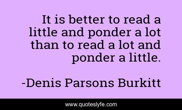 This page presents the quote "It is better to read a little and ponder a lot than to read a lot and ponder a little.". Author of this quote is Denis Parsons Burkitt. This quote is about thinking, reading,.