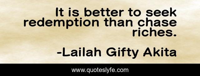 This page presents the quote "It is better to seek redemption than chase riches.". Author of this quote is Lailah Gifty Akita. This quote is about christian, riches, redemption,.