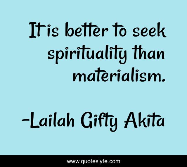 This page presents the quote "It is better to seek spirituality than materialism.". Author of this quote is Lailah Gifty Akita. This quote is about spirituality, seek, materialism,.