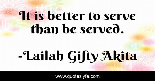This page presents the quote "It is better to serve than be served.". Author of this quote is Lailah Gifty Akita. This quote is about inspiring, leaders, service, serve, authority, volunteerism,.